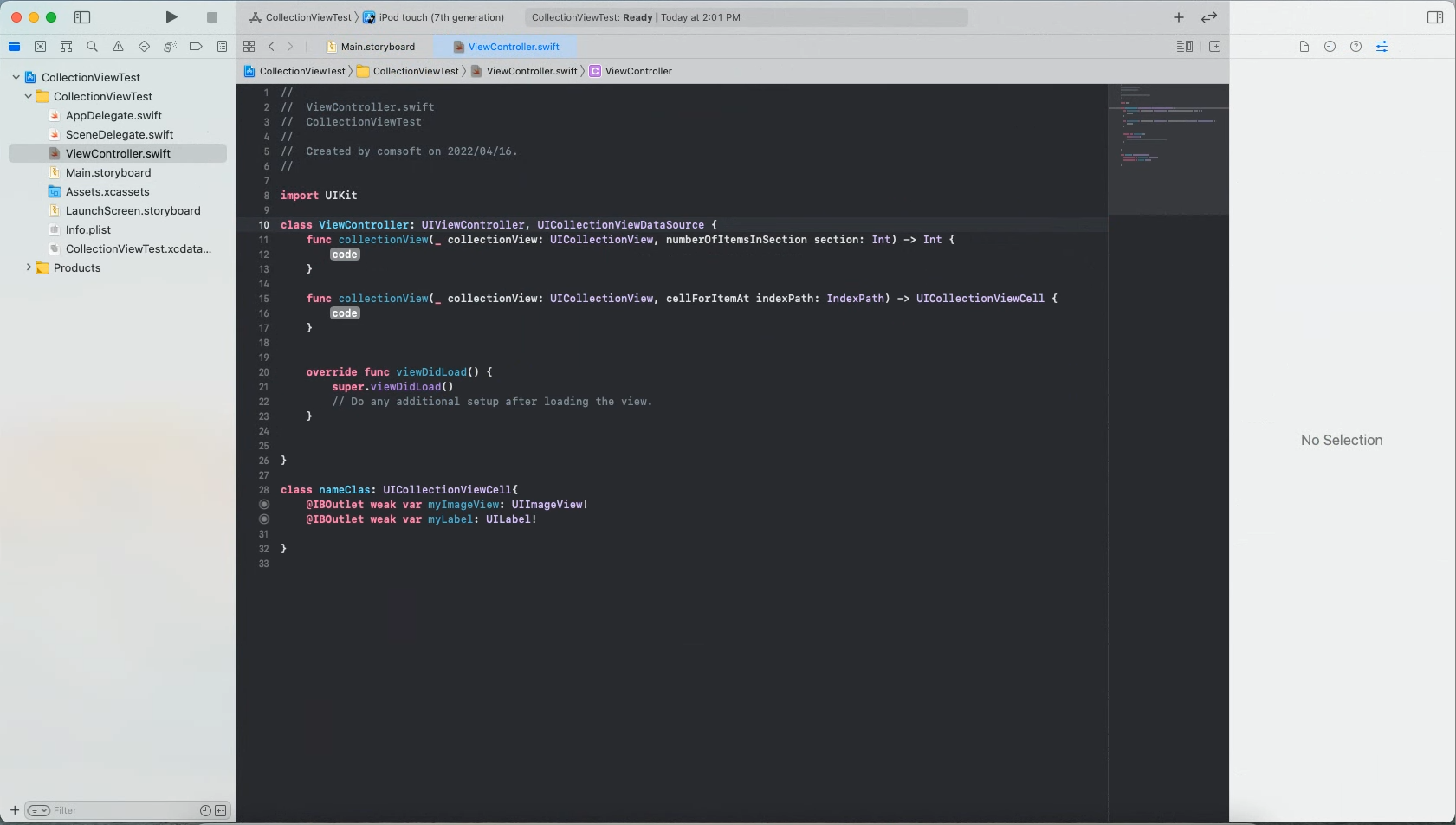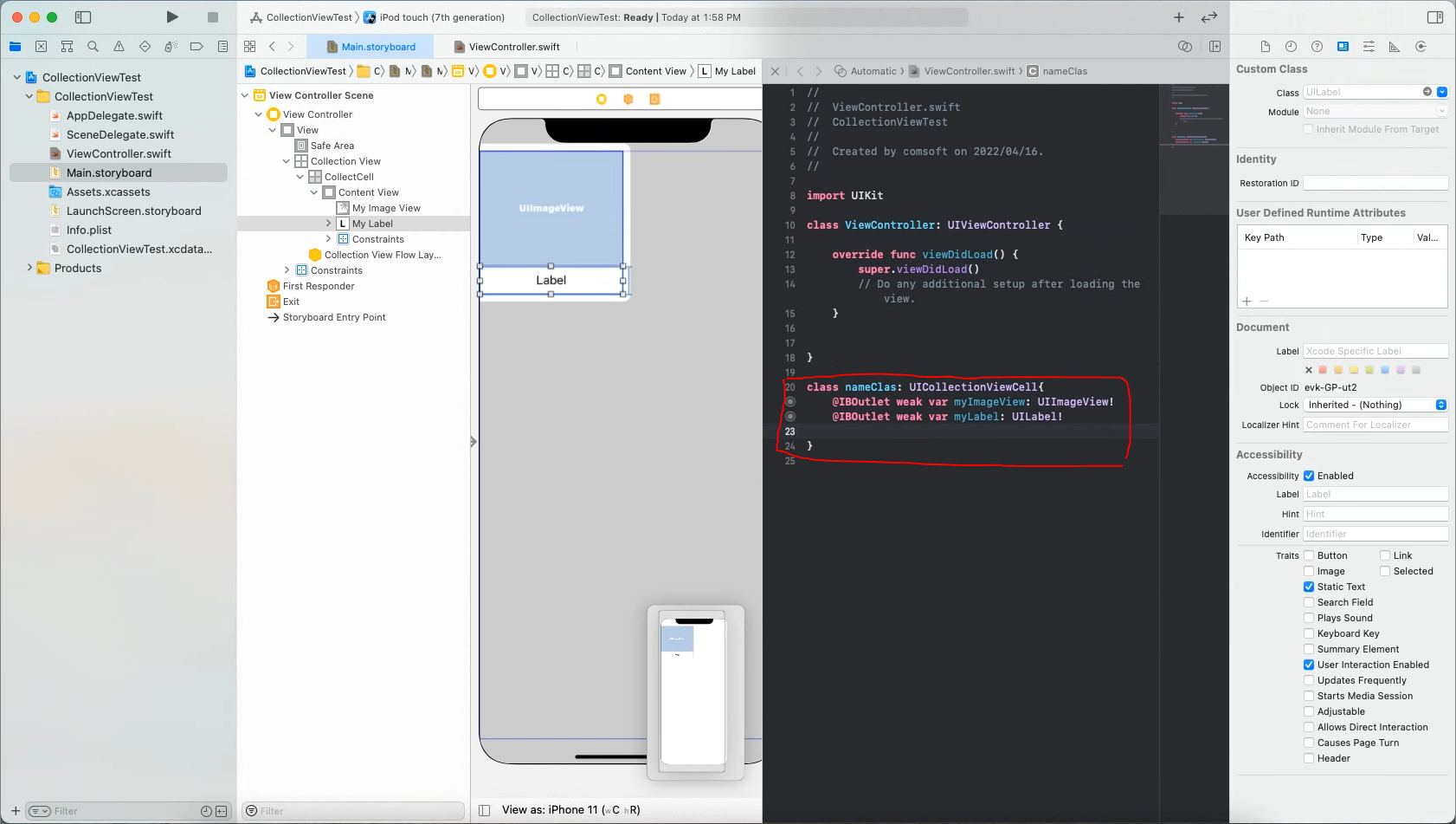 - 이어서 Outlet이 연결된 클래스를 Collect Cell의 클래스로 잡아줍니다.