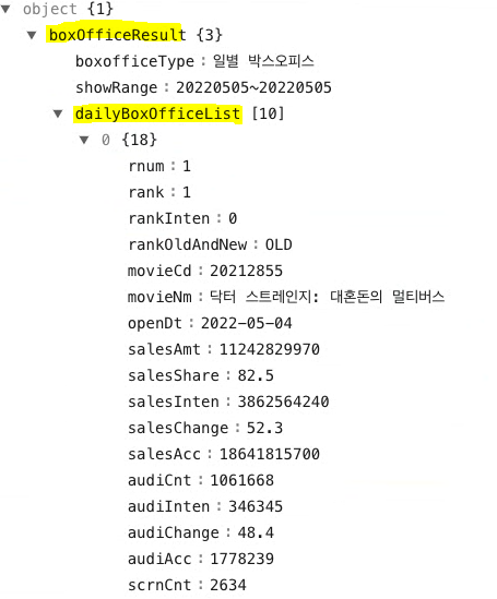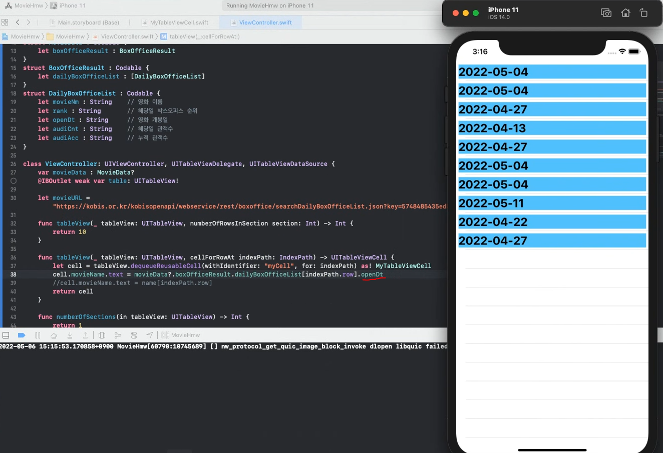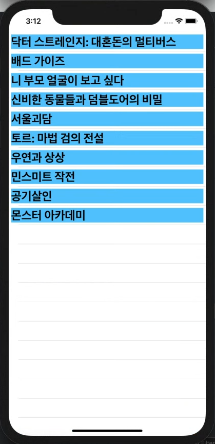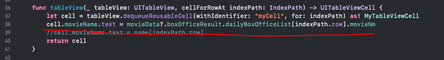 - cell.text의 들어갈 값을 openDt로 바꿔주면, 영화 개봉일이 출력되기도 합니다.