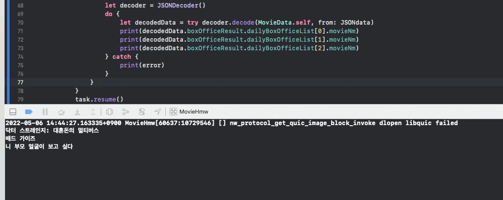 - JSONdata를 MovieData형으로 디코딩하는 과정인데,