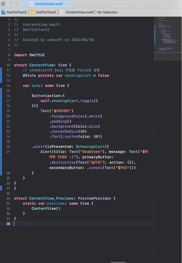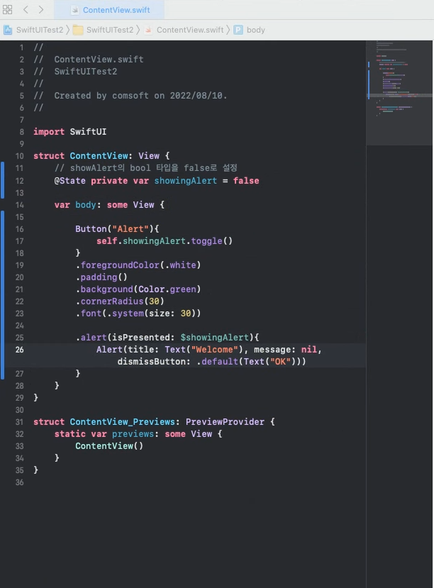 - 만약 Alert가 해제되면 bool 값이 자동으로 false로 설정됩니다.