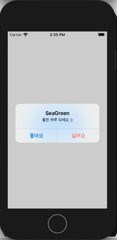 - 확인 후 밖으로 빠져 나오는 버튼 메시지를 dismissButton: Text에 적습니다.