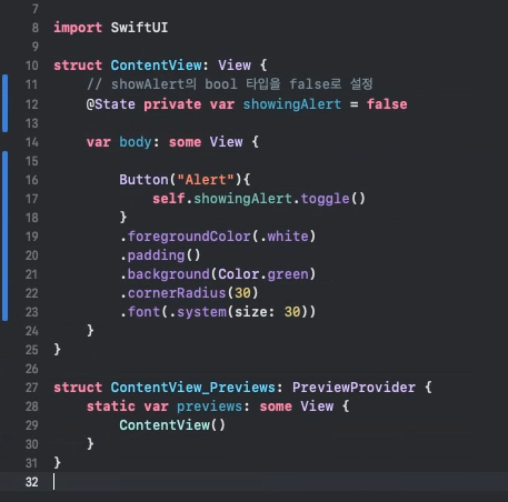 - SwiftUI는 bool 값이 상태이기 때문에 변경될 때마다 뷰를 새로 고칩니다.